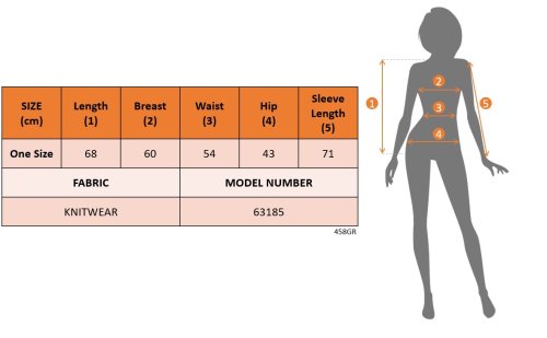 • Modelin Ölçüleri: Boy:165, Kilo:55, Göğüs:90, Bel:72, Kalça: 100