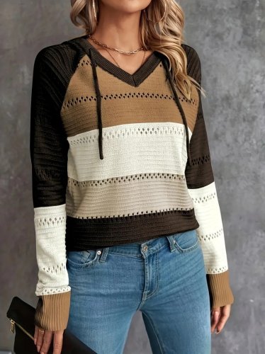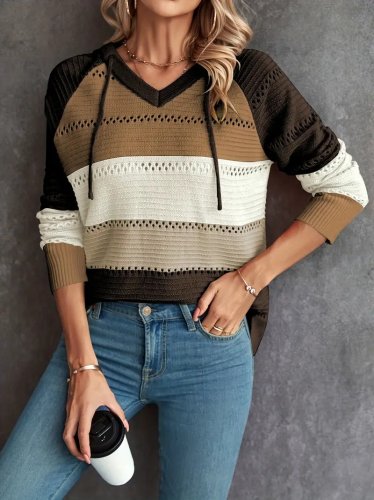 • Kadın uzun kollu v yakalı bağcıklı kapşonlu triko bluz