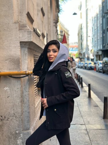 • Kadın ek parça kapüşon kol arma detay gabardin ceket