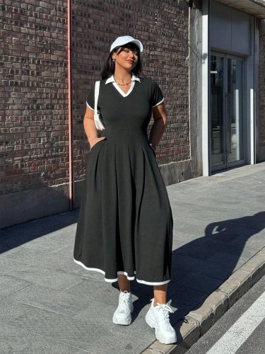 • Kadın kısa kollu v yakalı pileli uzun janjan krep elbise