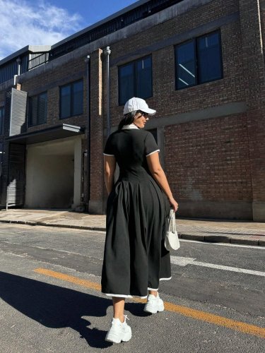 Kadın kısa kollu v yakalı pileli uzun janjan krep elbise