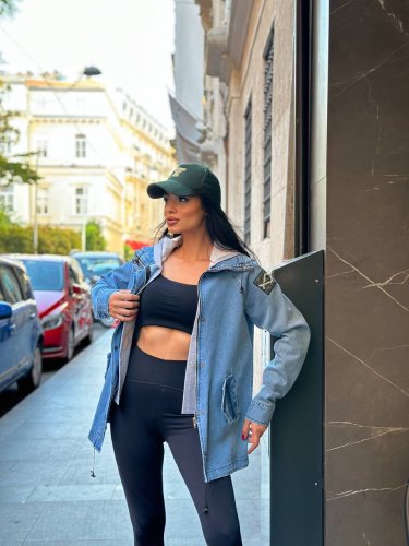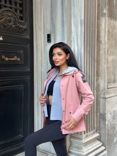 Kadın ek parça kapüşon kol arma detay gabardin ceket